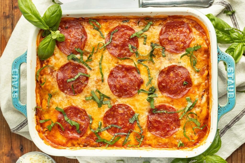 Jan ’26 Meal Prep Recipe: Pizza Spaghetti Squash Bake For every 100g:Protein: 8.4gCarbohydrates: 5.8gFats: 5.9gCalories: 107